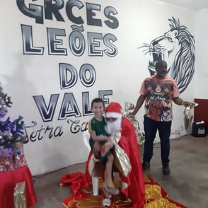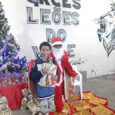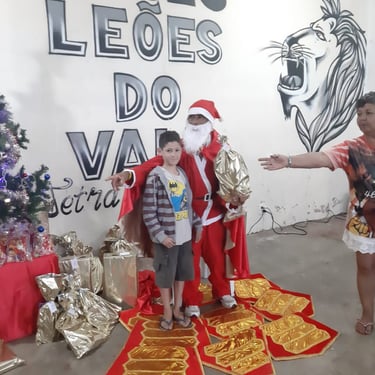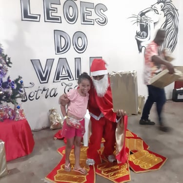 Entrega de brinquedos e doces na quadra da Escola de Samba Leões do Vale, onde foi cedido o espaço para realização do evento.