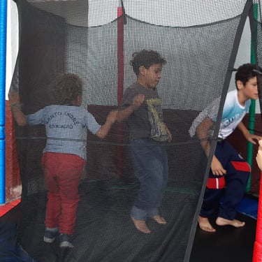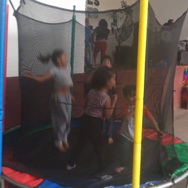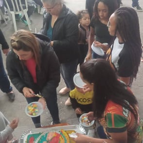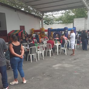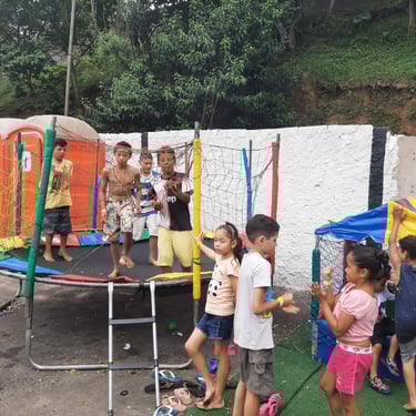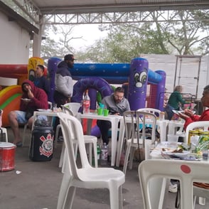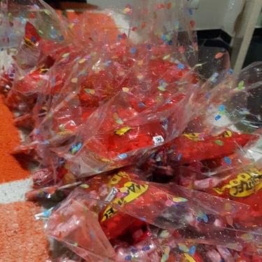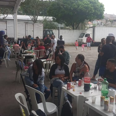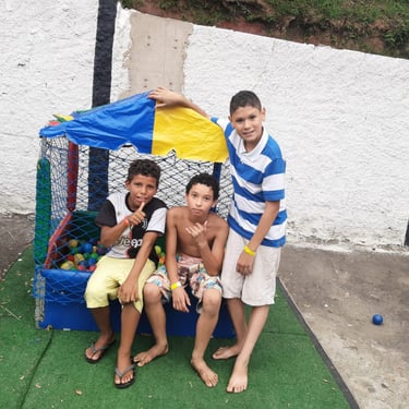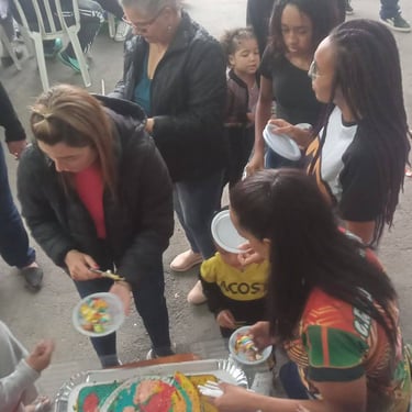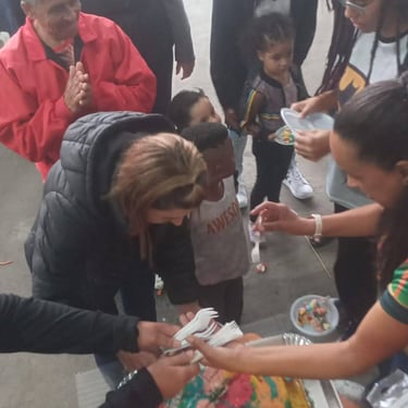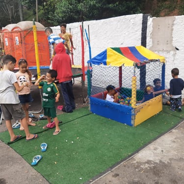 Entrega de chocolate e doces para as crianças na quadra da Escola de Samba Leões do Vale, onde foi cedido o espaço para realização do evento.